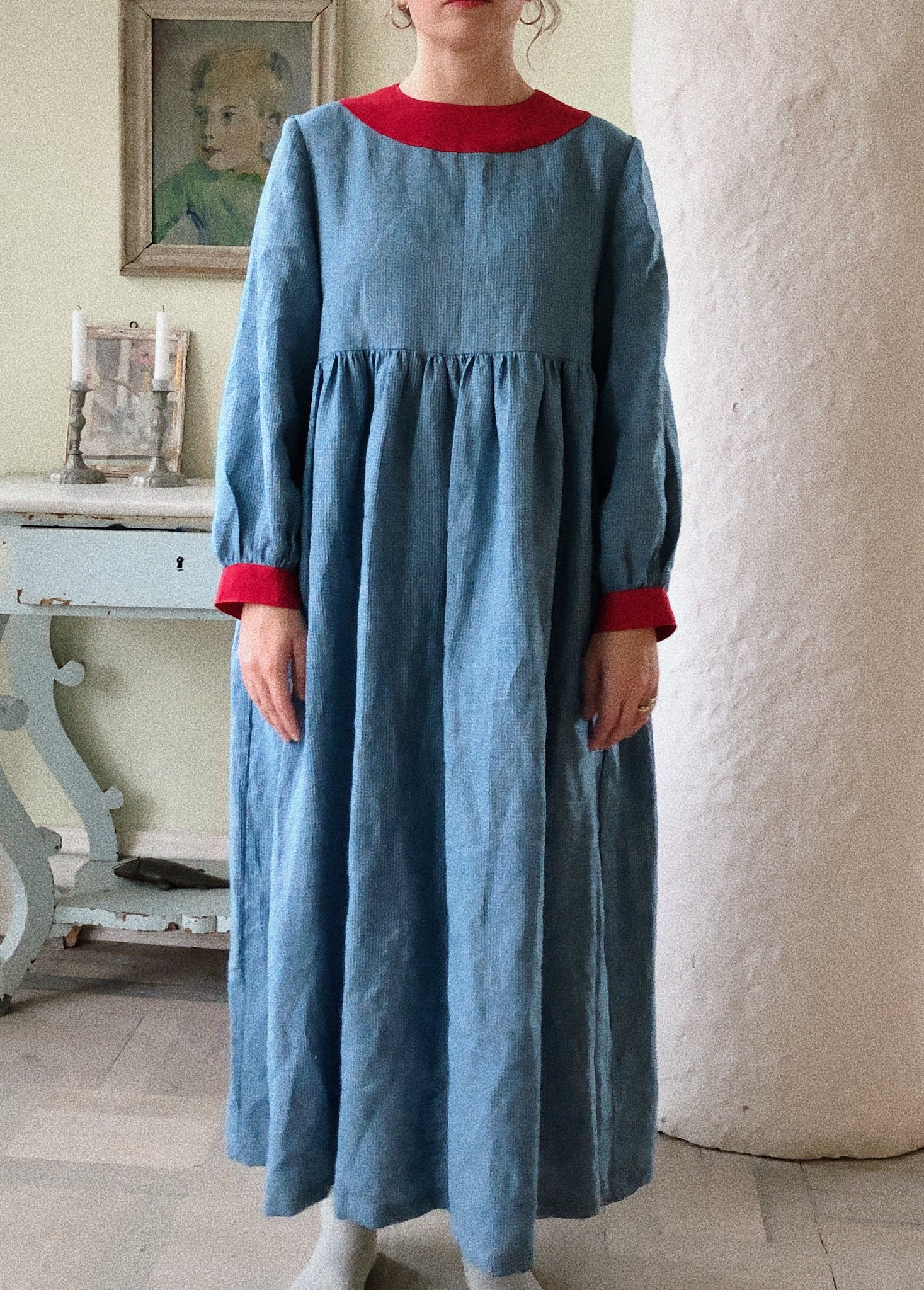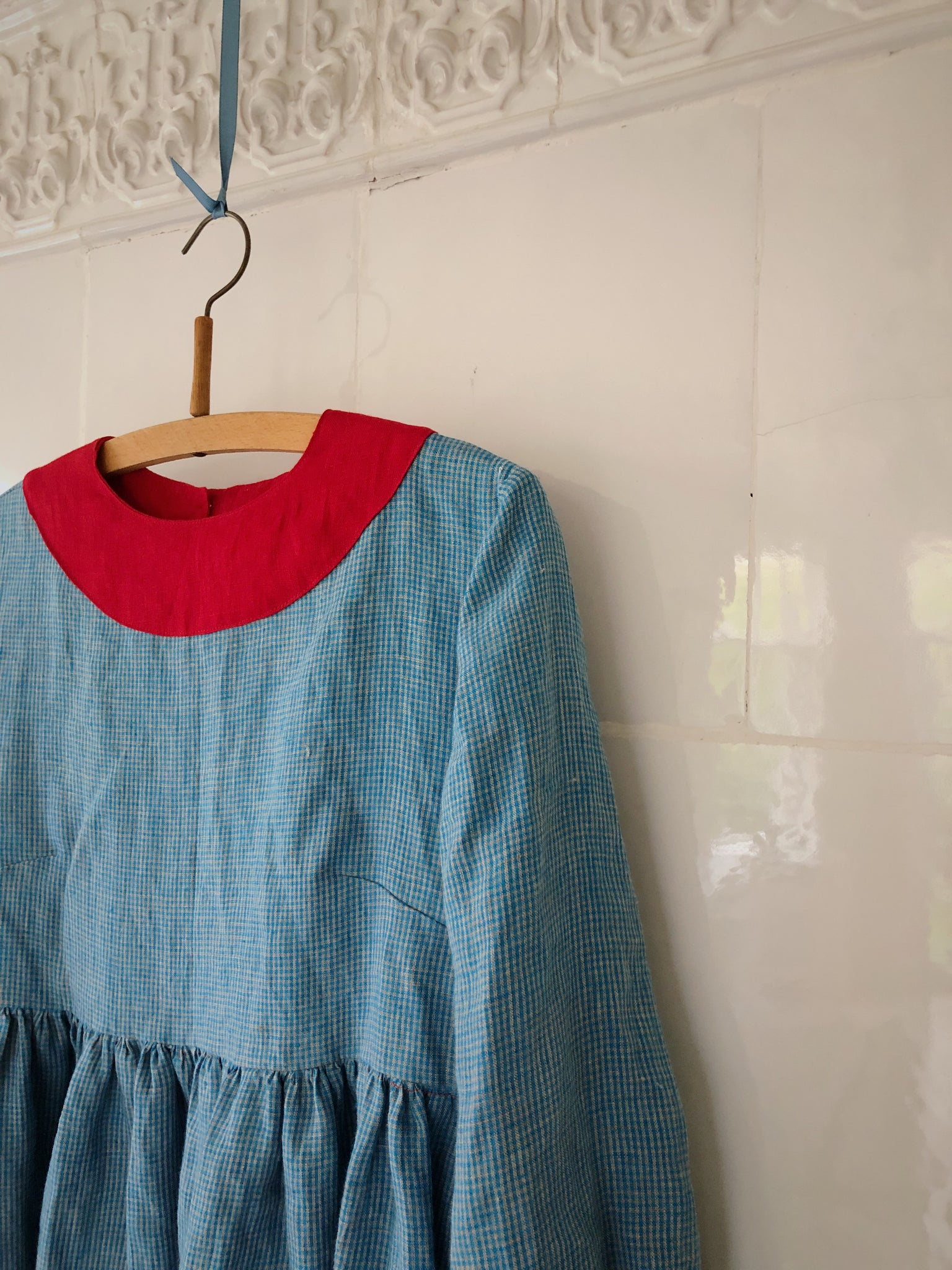 — Back fastening with two small tabs, hand embroidered buttonholes and small vintage buttons