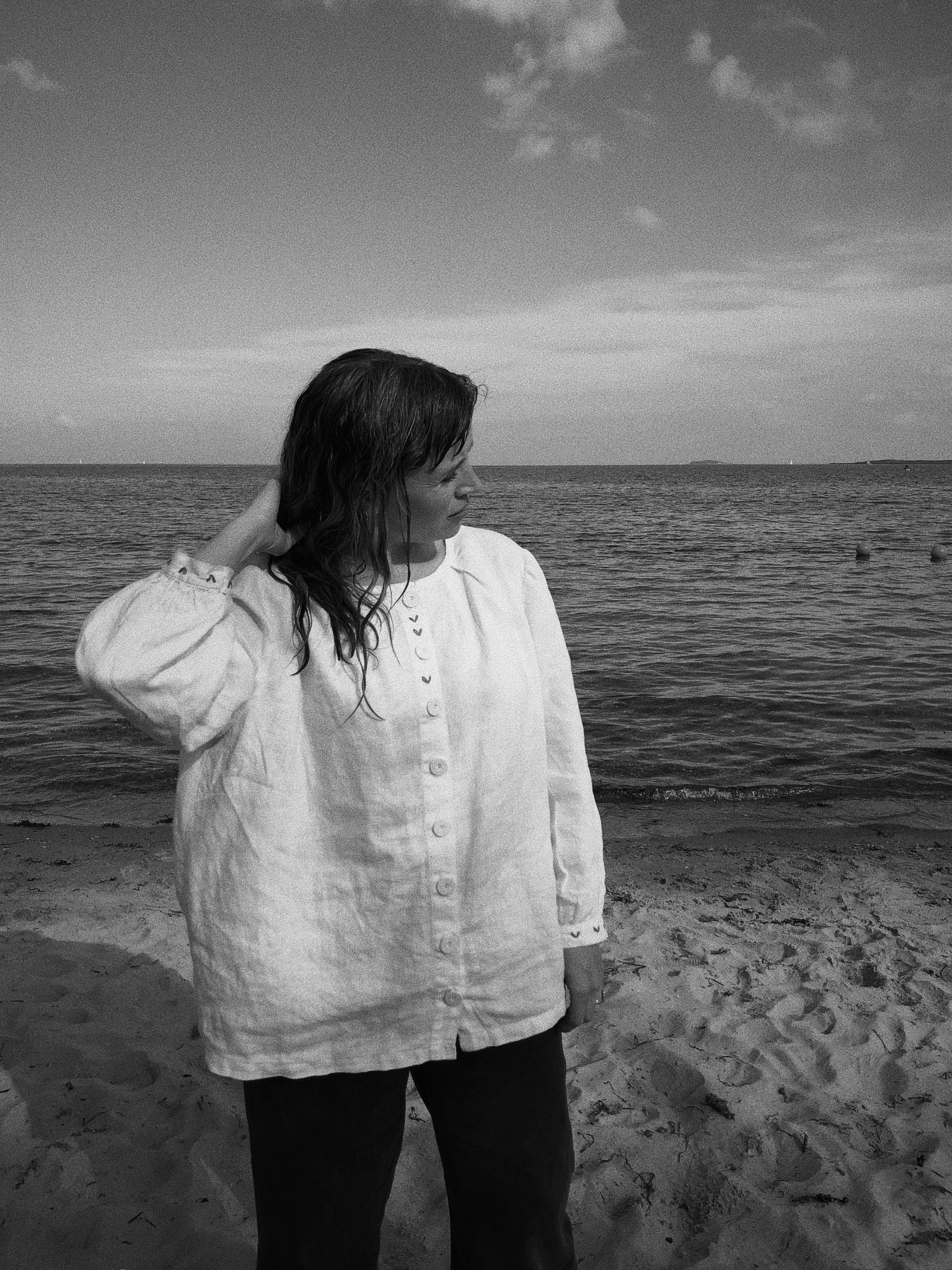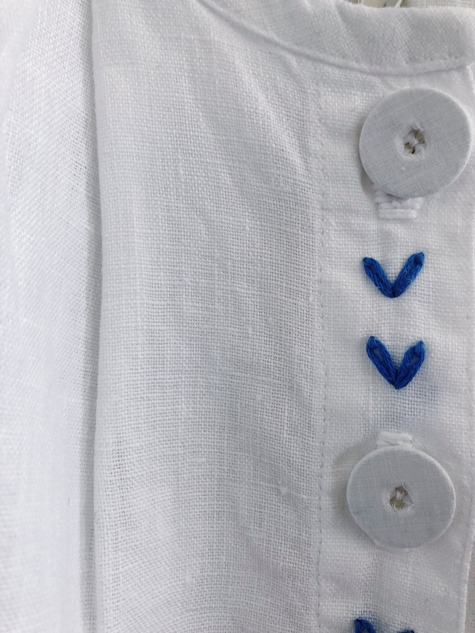 — hand embroidered navy ‘sprouts’ in vintage navy cotton thread. Please note due to their handmade nature these sprouts will vary slightly in size and shape.