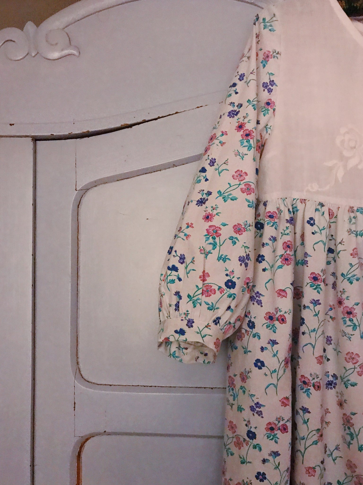 - embroidered white roses on white bodice (slightly translucent fabric)