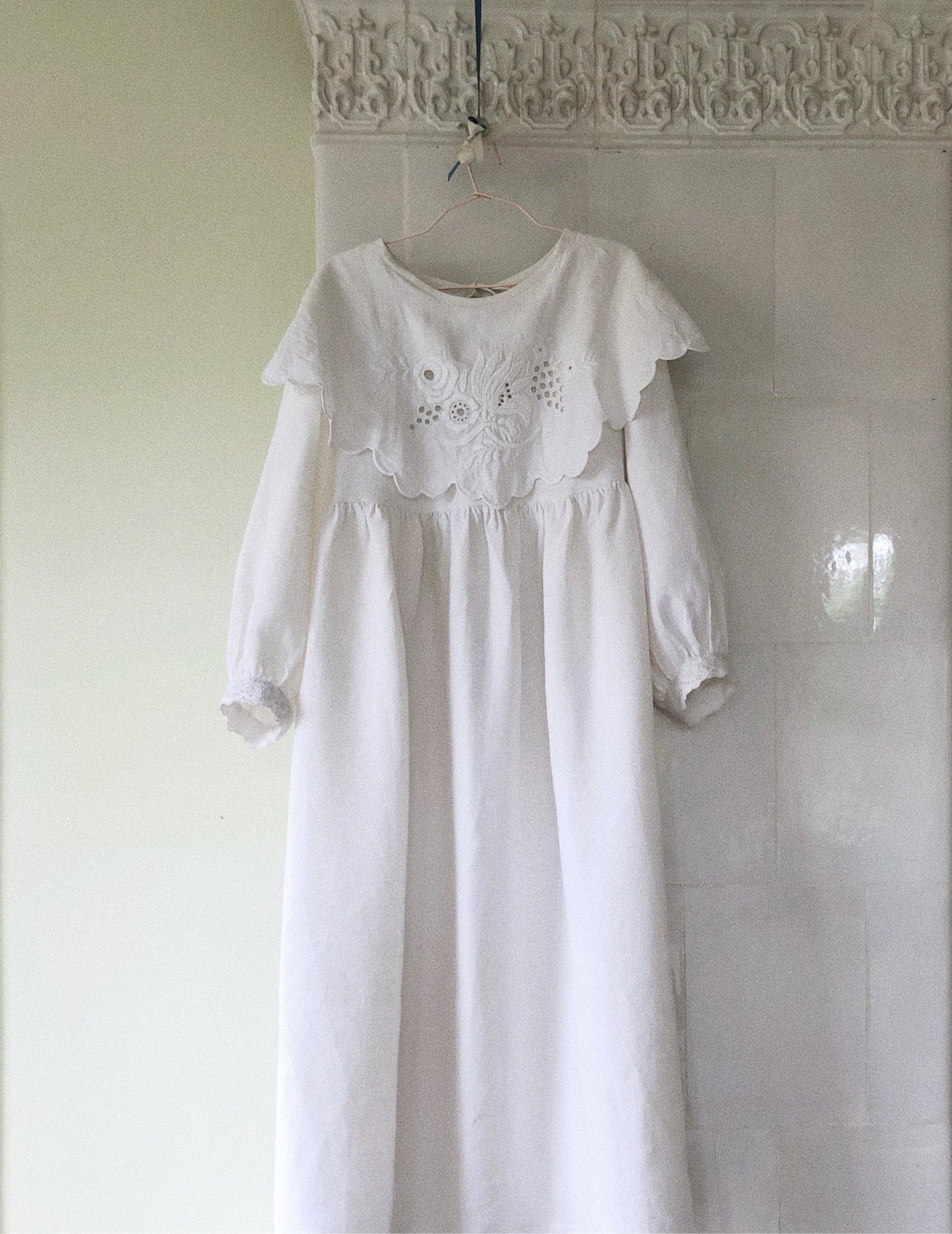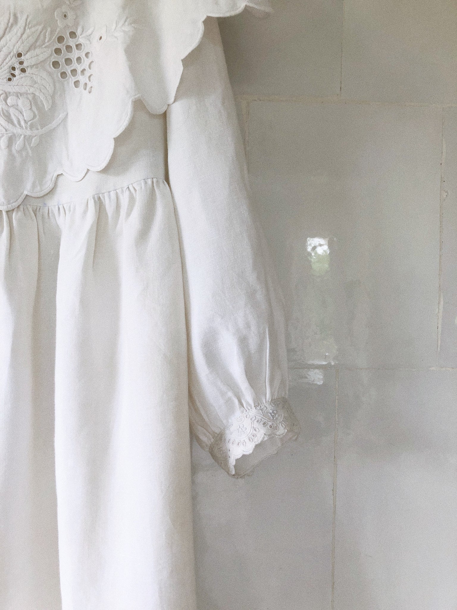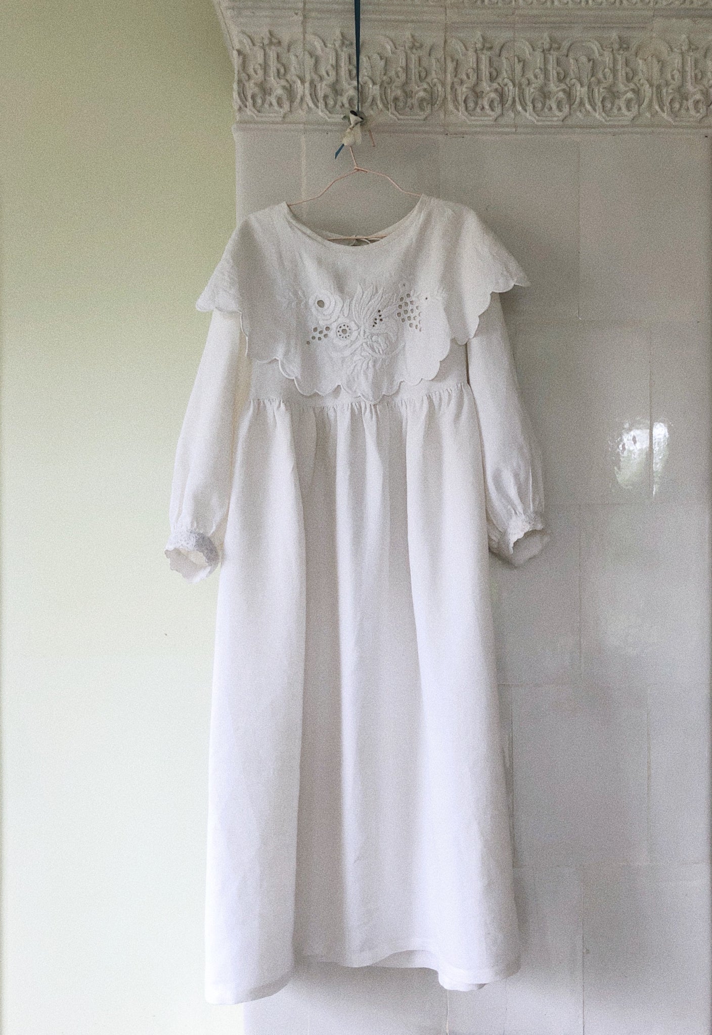 - unlike the made to order, the fabric on this dress is vintage. Very likely pure linen in an off white colour